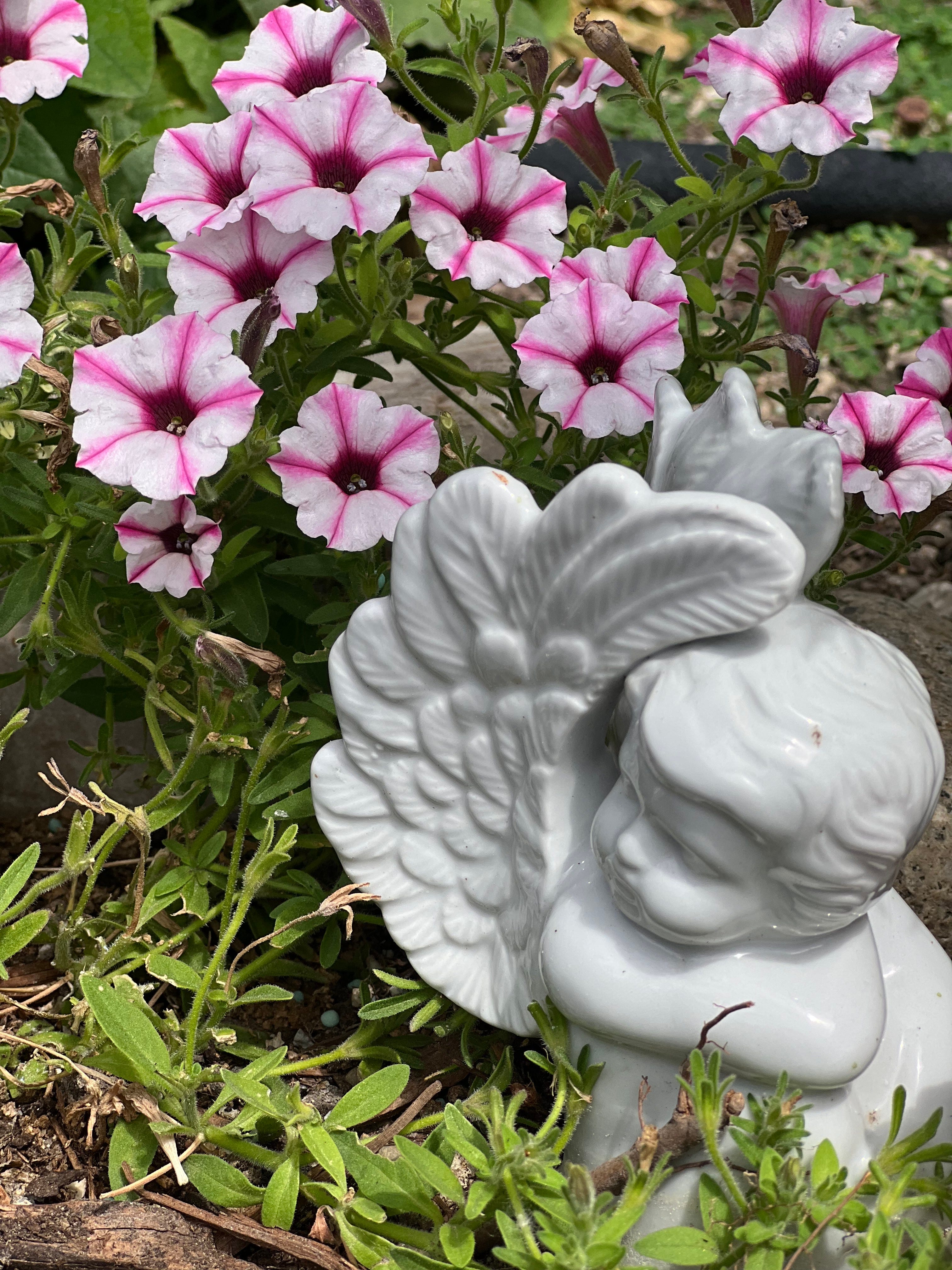 Little angel, so sweet and kind protecting the white and pink petals behind.